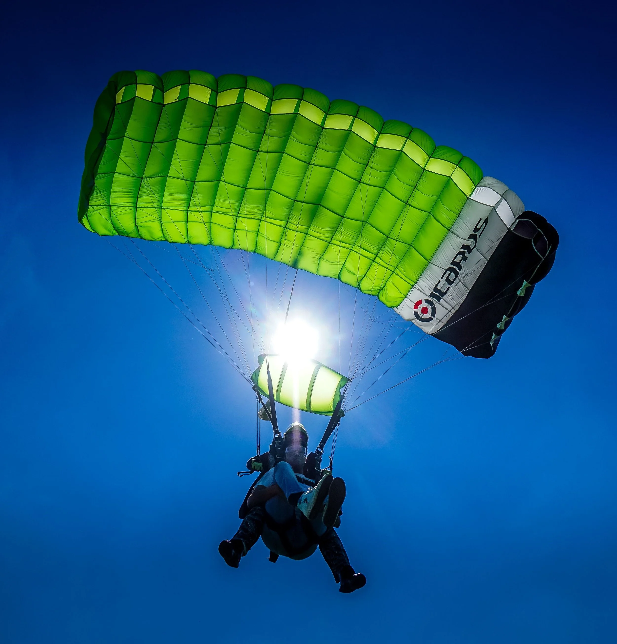 Different parachutes serve different purposes. Tandem canopies (the “school buses” of the sky) are big, sturdy, and built to carry two people at a calm, steady pace. Student parachutes are like your first car—easy to handle and forgiving. Reserves, on the other hand, are designed to open lightning-fast in an emergency, while high-performance canopies are built for pros who crave speed and precision.
