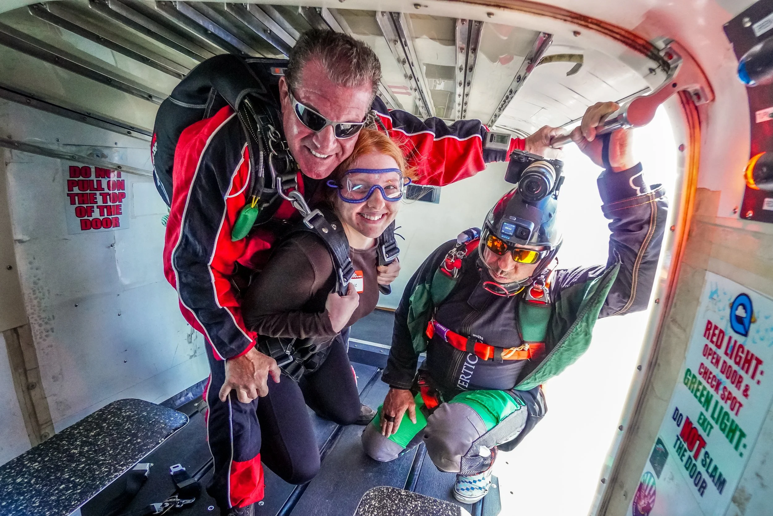 Tandem skydive pair ready for exit.